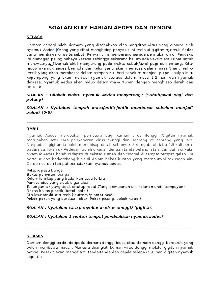 Kuiz Harian Aedes Dan Denggi Pdf